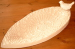 2004Deze ovale schaal van grove klei, soms gebruikt voor de vogeltjes, een ander vroeg mij die weer te maken en werd dan als fruitschaal gebruikt....